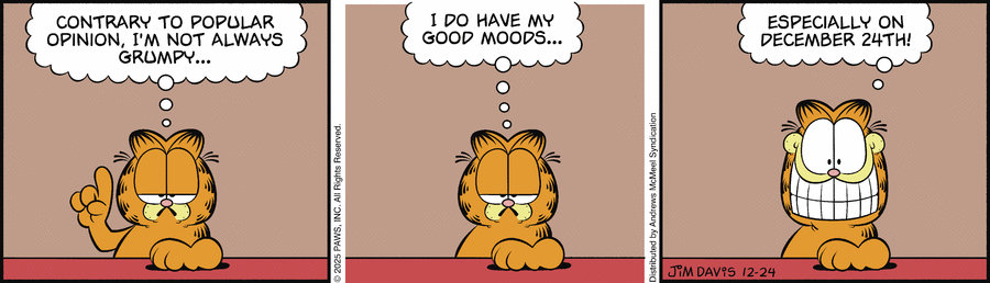 Garfield: Contrary to popular opinion, I'm not always grumpy... I do have my good moods... Especially on December 24th!