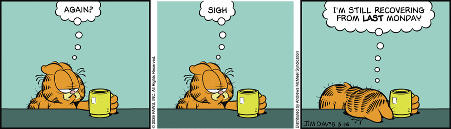 Garfield: Again? Sigh. I'm still recovering from LAST monday